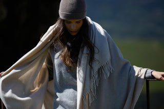 Saser - Elegant Pure Cashmere Throw with Light Blue Fringes