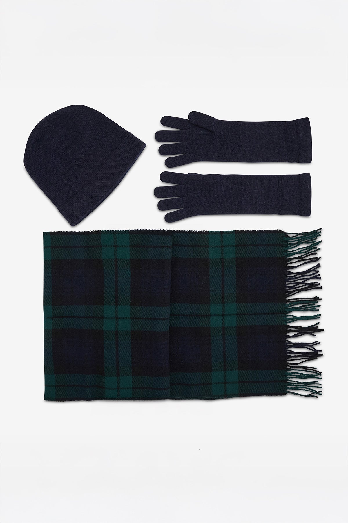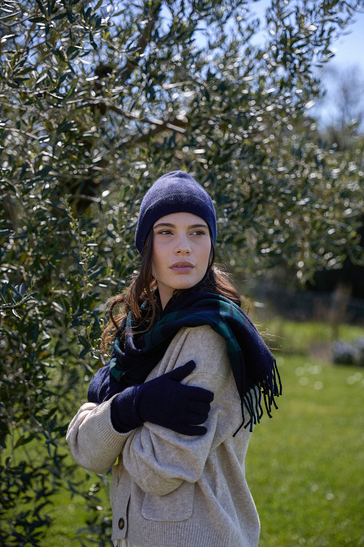 The Derby scarf, made from pure extrafine Merino wool, is woven with premium yarns that ensure exceptional softness, warmth, and comfort. Its black and green tartan pattern conveys timeless sophistication, while the brushed and combed finish adds a delightful sense of lightness and refinement.